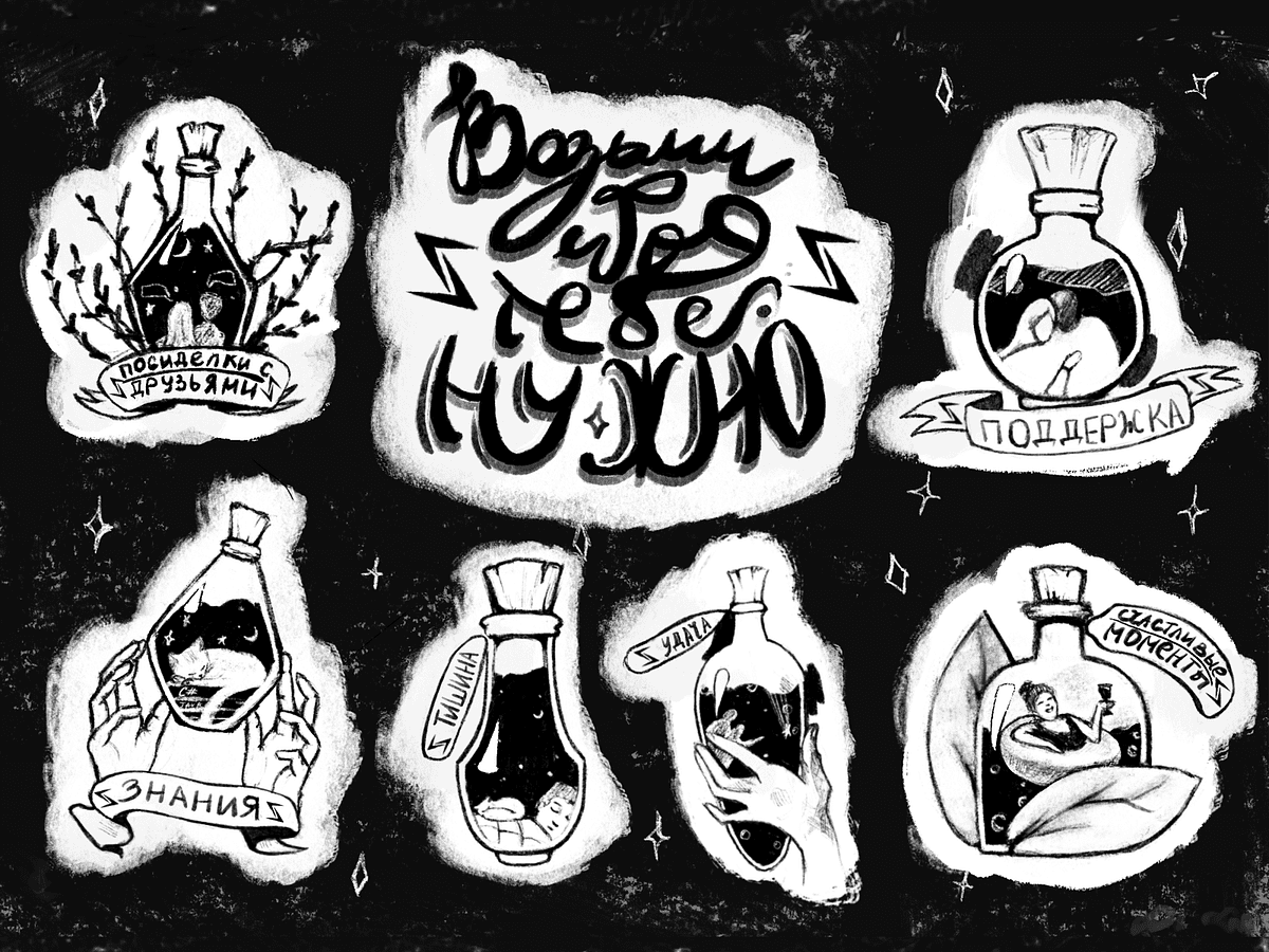 Маше было интересно узнать и про цифровой рисунок, тут помогла школа Pixel и её курсы по Adobe Photoshop, Adobe Illustrator. За полгода усидчивой работы над домашними заданиями получилось небольшое портфолио! И как раз в это время художницу позвали в студенческую команду рисовать наборы стикеров.